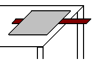 el borde de una mesa de tal manera que asome más o menos la mitad.