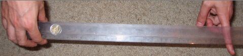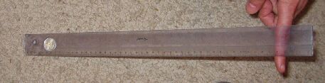 regla muy larga y un martillo con un mango también muy largo, a