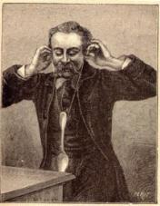 Fig 94.-El tic-tac de un reloj oído desde el extremo de unas tenazas de chimenea. |